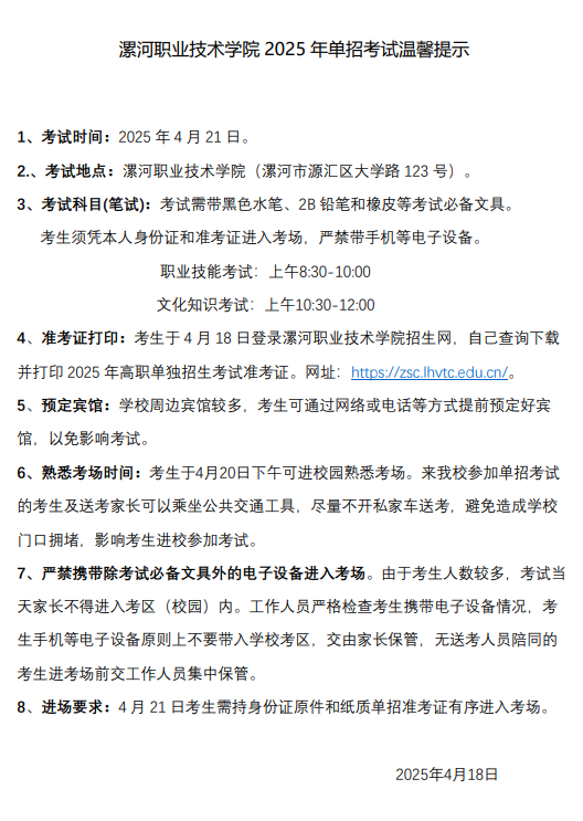 太阳成tyc122cc集团2025年单招考试温馨提示