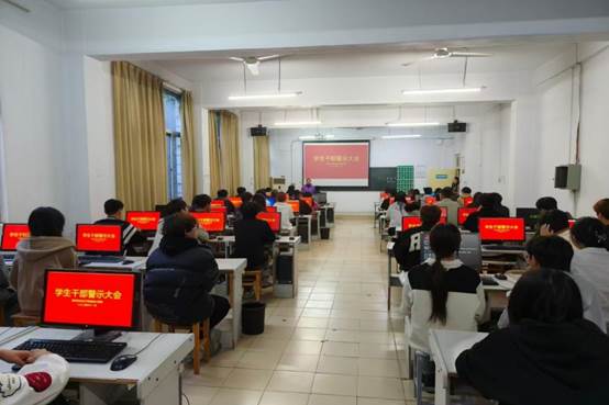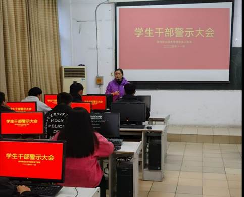 为进一步加强员工干部队伍建设,提升员工干部队伍思想政治觉悟,牢记服务宗旨,强化服务意识、纪律意识,不断改进工作作风,充分发挥员工干部的榜样引领作用,信息工程系于11月13日下午在计算机大楼305教室召开了员工干部警示教育大会。系员工工作负责人樊佩佩、学联会员工干部、各班班长和团支书参加了会议。